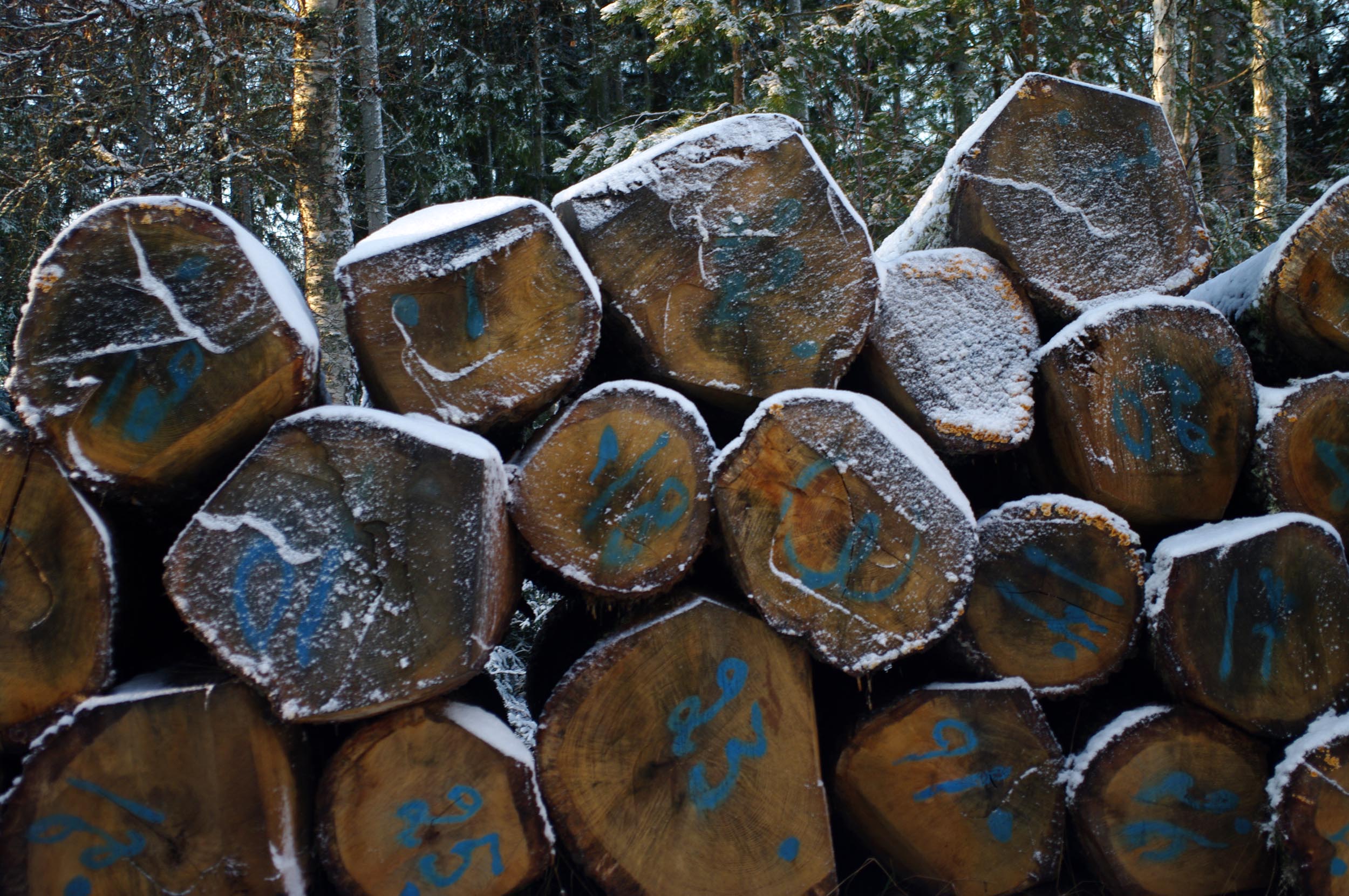 De ekstockar som väljs ut får inte vara kvistiga, böjda eller vridna – en sådan stock kan aldrig bli en tät tunna. Därför är vi extremt noggranna när vi gör urvalet. När ekarna fällts i skogen tas utvalda stockar av dem undan av skogsarbetarna för att sedan genomgå ytterligare gallring av Johan Thorslund. Ungefär hälften av de bästa stockarna brukar klara kvalitetskontrollen. De märks då med en unik identitet och skickas till tunnbinderiet i Högsjö.
